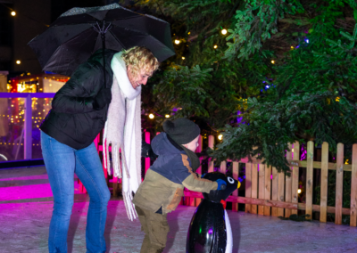 Een middag vol kerstsfeer op het plein: geniet van live muziek, de geur van warme chocolademelk en vers gebakken oliebollen. De kunstijsbaan is open voor iedereen die zin heeft om de schaatsen onder te binden.